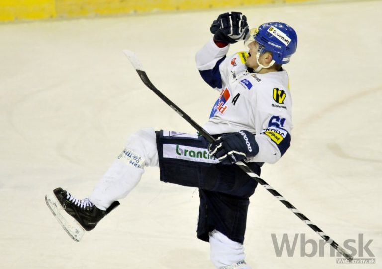 Jaroslav Markovič z MHC Mountfield Martin sa raduje z gólu počas 44. kola hokejovej Tipsport extraligy medzi Dukla Trenčín a MHC Mountfield Martin. Trenčín, 25. január 2015. Foto: SITA/Tomáš Somr