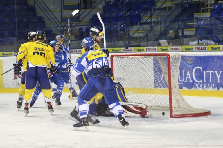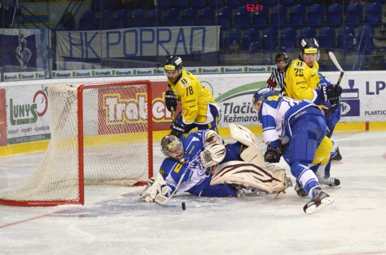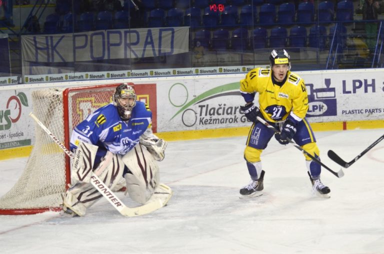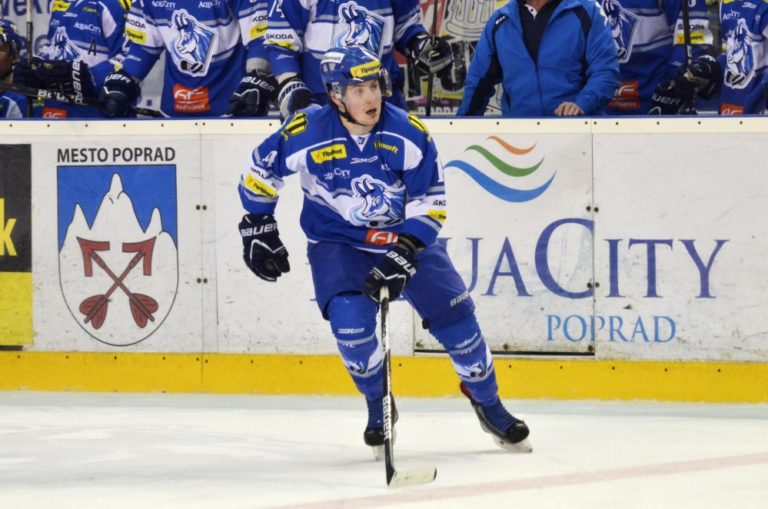 Samuel Mlynarovič z HK Poprad počas hokejového zápasu Slovnaft play-off Tipsport extraligy - štvrťfinále - tretí zápas, HK Poprad – ŠHK 37 Piešťany. Poprad, 14. marec 2014. Foto: SITA/Radoslav Maťaš