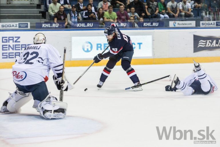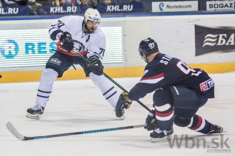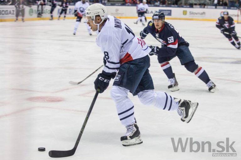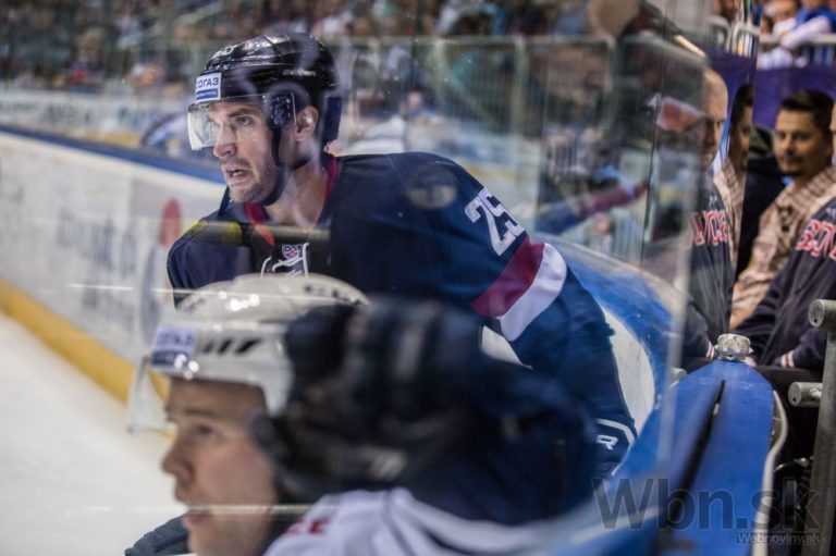 Marek Viedenský zo Slovana v zápase Kontinentálnej hokejovej ligy (KHL) medzi HC Slovan Bratislava - Medveščak Záhreb. Bratislava, 6. september 2015. Foto: SITA/Marko Erd