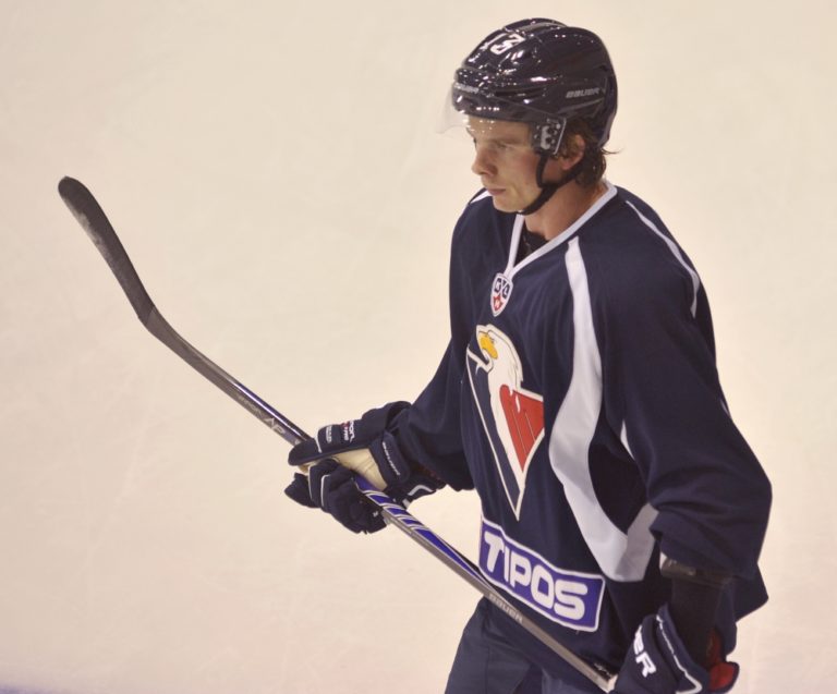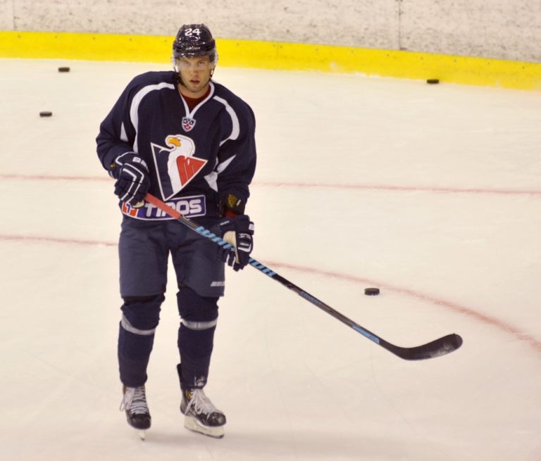 Patrick White počas prvého tréningu HC Slovan Bratislava pred novou sezónou. Bratislava, 11. júl 2014 Foto: SITA/Ján Slovák