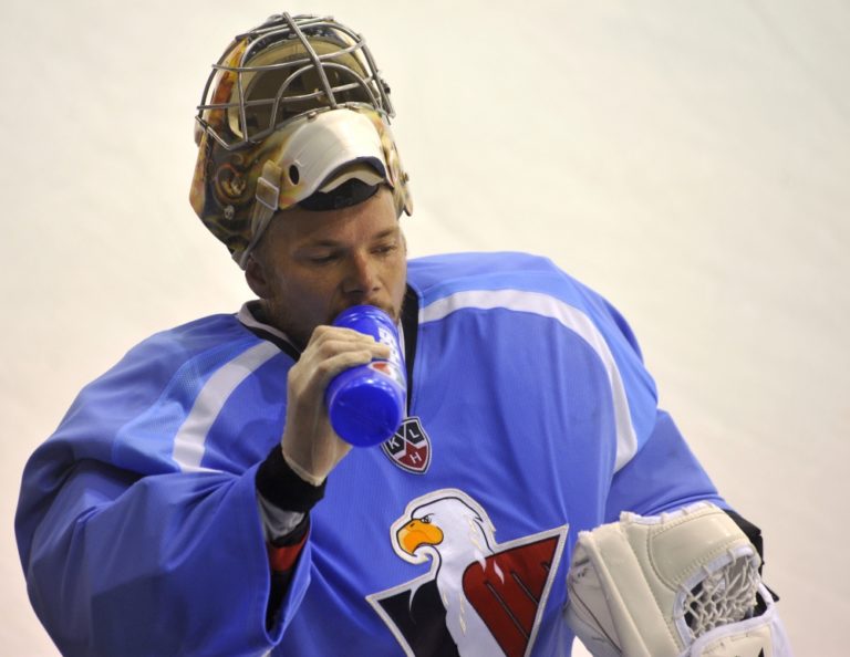 Brankár Johan Backlund počas prvého tréningu HC Slovan Bratislava pred novou sezónou. Bratislava, 11. júl 2014 Foto: SITA/Ján Slovák