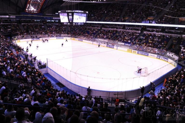 Zaplnené hľadisko Steel Arény v prípravnom zápase HC Košice - Slovan Bratislava. Košice, 6. august 2014. Foto: SITA/Ivan Fleischer