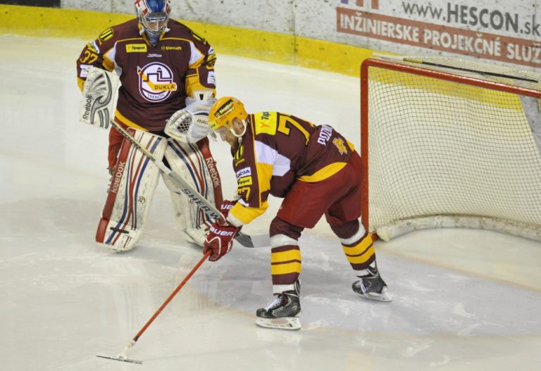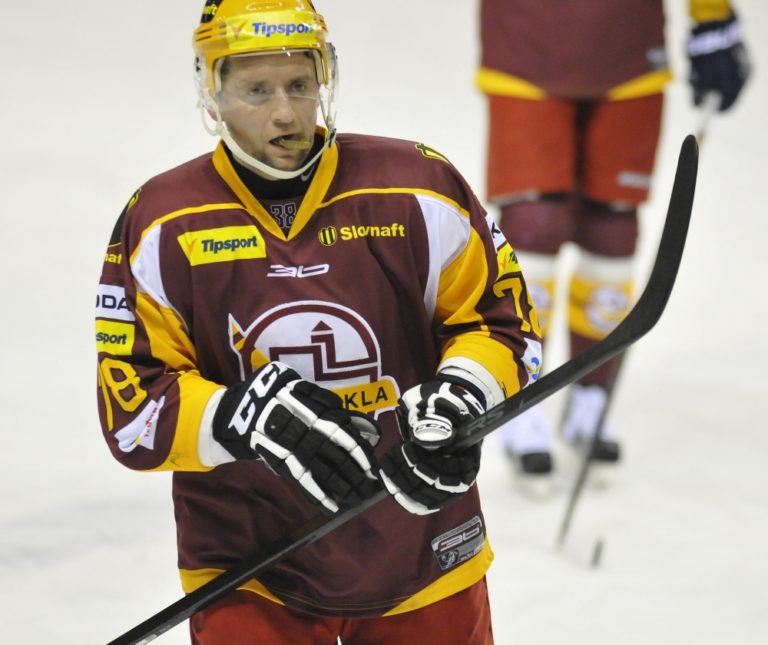 Branislav Jánoš z Dukly Trenčín počas hokejového zápasu 52. kola Tipsport extraligy medzi Dukla Trenčín a HK Nitra. Trenčín, 28. február 2014. Foto: SITA/Tomáš Somr