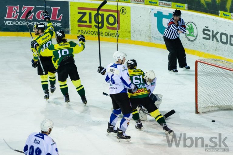 Zľava: Marek Hatas (HC 07 Orin Detva), Milan Procházka (MsHK DOXXbet Žilina) a Marek Pač (HC 07 Orin Detva) počas zápasu slovenskej hokejovej Tipsport extraligy 2014/2015 medzi MsHK DOXXbet Žilina a HC 07 Orin Detva. Žilina, 12. marec 2014. Foto: SITA/Milo Fabian