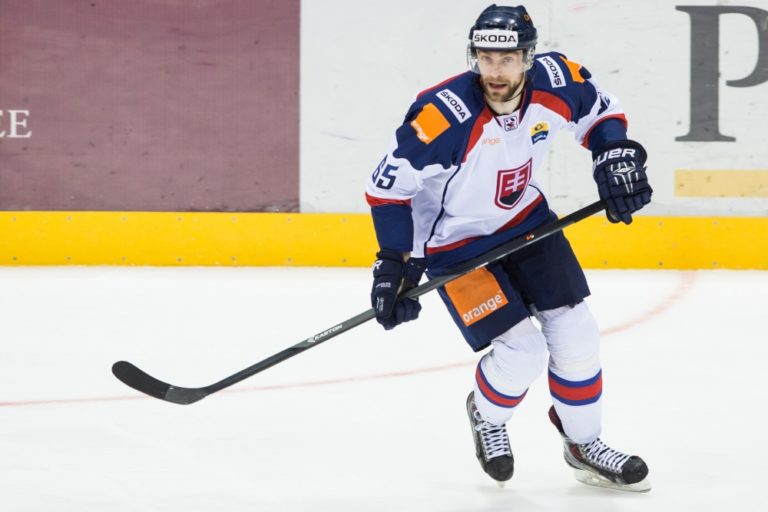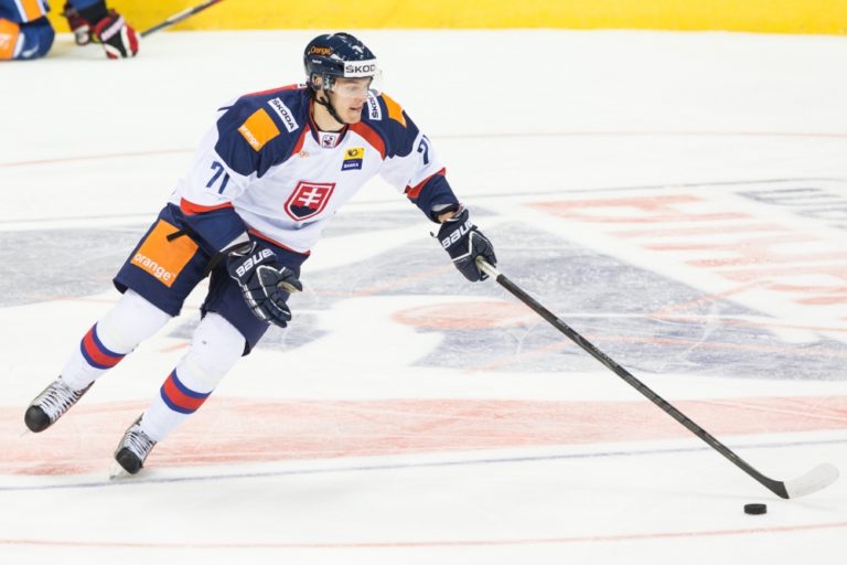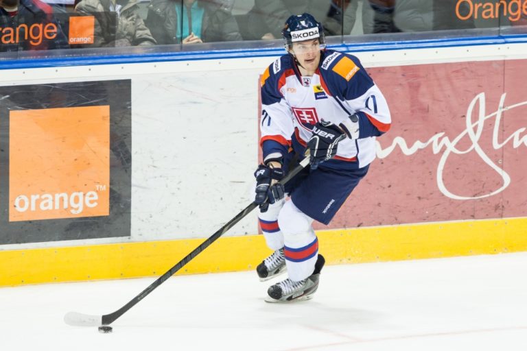 Hráč Olympijského výberu SR Juraj Mikuš počas prípravného zápasu medzi Olympijským výberom SR a výberom Tipsport extraligy. Bratislava, 3. február 2014. Foto: SITA/Jozef Jakubčo