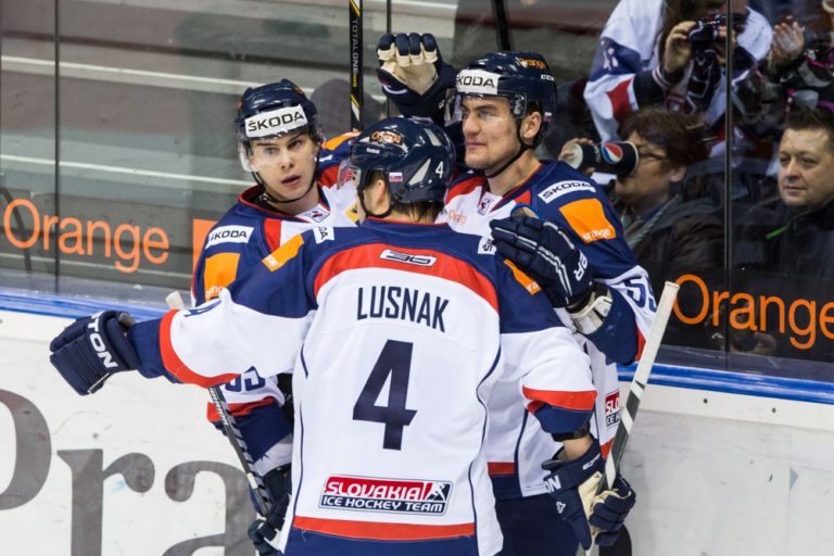 Hráči Olympijského výberu SR počas prípravného zápasu medzi Olympijským výberom SR a výberom Tipsport extraligy. Bratislava, 3. február 2014. Foto: SITA/Jozef Jakubčo