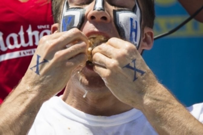 Joey Chestnut, víťaz tohtoročnej súťaže v jedení hot-dogov Foto: SITA/AP