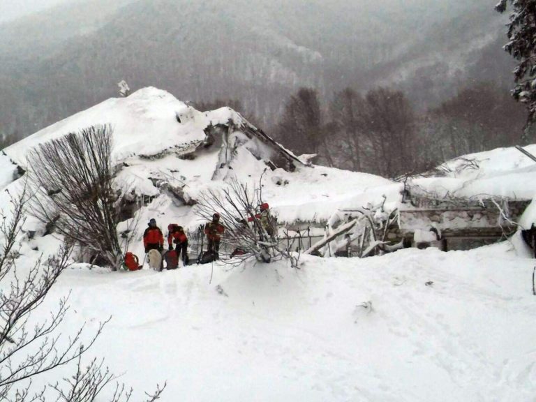 Zasypaný hotel Rigopiano. Foto: SITA/AP