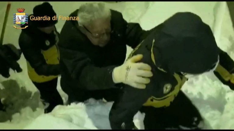 Záchranári pomáhajú mužovi počas záchrannej operácie. 19. január 2017 Foto: SITA/AP