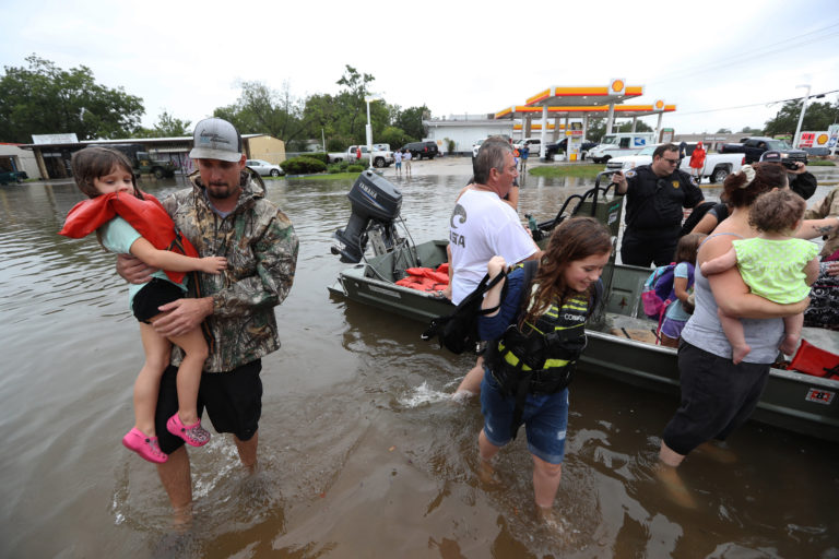 Hurikán Harvey spôsobil záplavy v meste Houston a jeho okolí, a tak množstvo ľudí zostalo bez domova. 30. august 2017 Foto: SITA/AP.