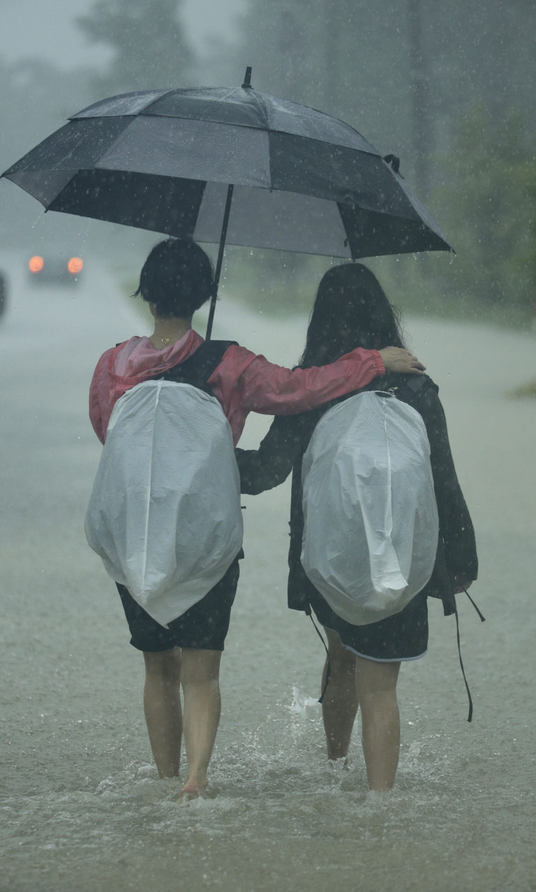 Mesto Houston v americkom štáte Texas po hurikáne Harvey, ktorý sa tamojším územím počas víkendu prehnal, zasiahli rozsiahle záplavy spôsobené prudkým dažďom. V zatopených oblastiach záchranári pomohli už vyše tisíc ľuďom. V houstonskej metropolitnej oblasti platí z dôvodu prudkých povodní výnimočný stav a cestovanie v nej je takmer nemožné Foto: Mark Mulligan/Houston Chronicle via AP.