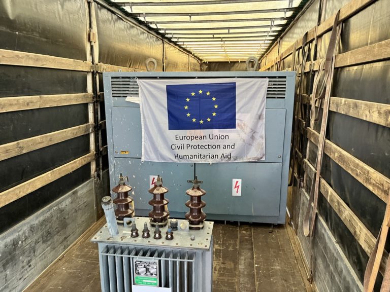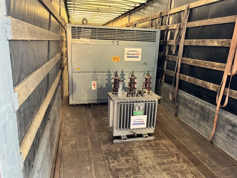 Ministerstvo vnútra SR v spolupráci so spoločnosťou Transpetrol a S & D Pharma SK ponúklo Ukrajine humanitárnu pomoc vo forme 4 transformátorov a vitamínov Devit. Bratislava, 13. február 2024. Foto: SITA/MV SR