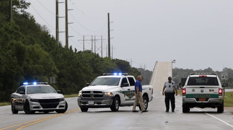 Polícia uzavrela cestu na Emerald Isle v Severnej Karolíne pre hurikán Florence. 14. september 2018 Foto: SITA/AP