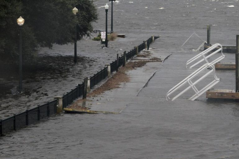 Pobrežie mesta New Bern v Severnej Karolíne po príchode hurikánu Florence. 14. september 2018 Foto: SITA/AP