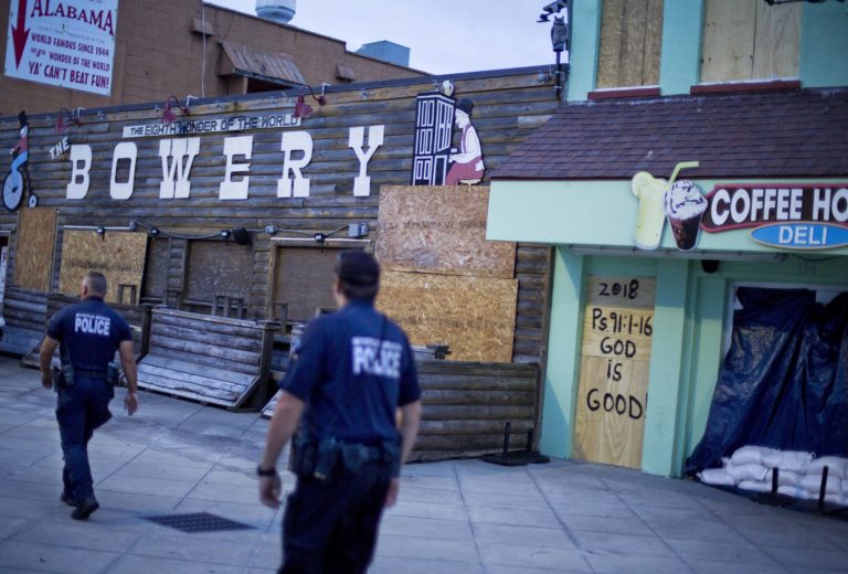 Policajné hliadky kontrolujú promenádu na Myrtle Beach v Južnej Karolíne pred hurikánom Florence. Foto: SITA/AP