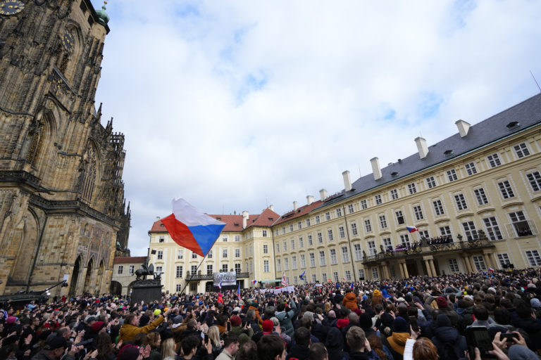 Novozvolený český prezident Petr Pavel prehovoril k davu po svojom inauguračnom ceremoniáli v Prahe. Foto: SITA/AP, Petr David Josek