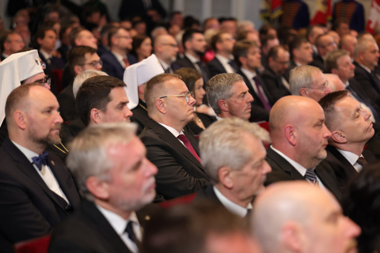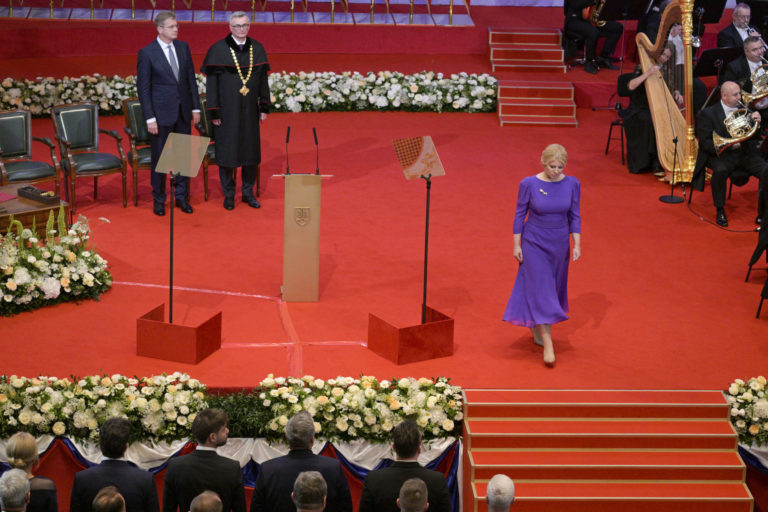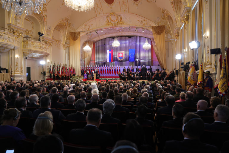 Atmosféra počas príhovoru prezidenta SR v rámci slávnostnej schôdze Národnej rady SR v budove Slovenskej filharmónie pri príležitosti inaugurácie novozvoleného prezidenta SR Petra Pellegriniho. Bratislava, 15. jún 2024. Foto: SITA/Kancelária NR SR