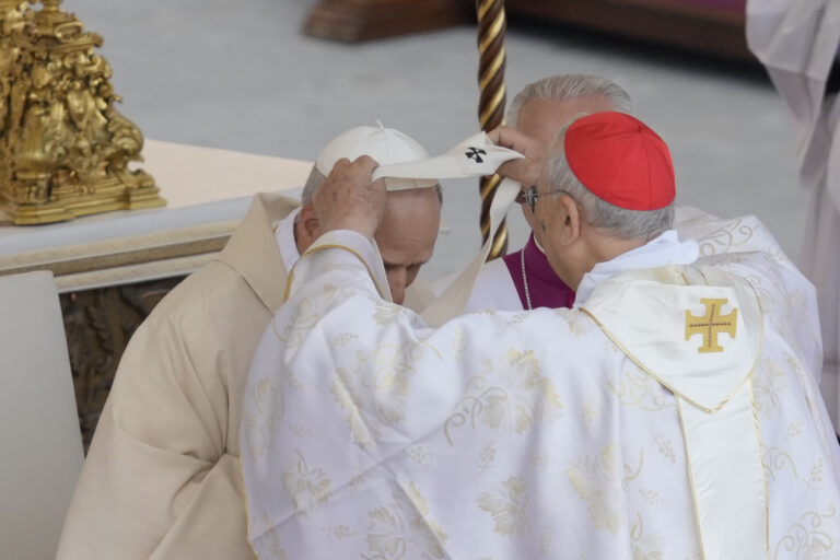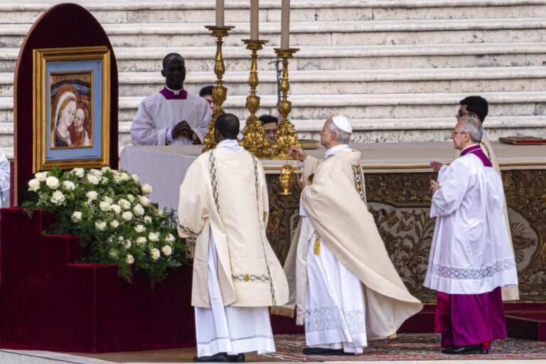 Pápež Lev XIV. počas inauguračnej omše svojho pontifikátu v nedeľu 18. mája 2025. Foto: SITA – AP