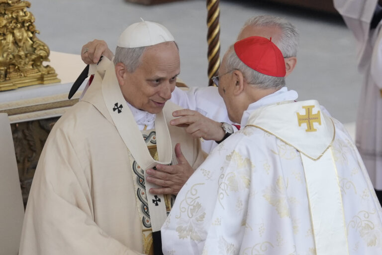 Pápež Lev XIV. počas inauguračnej omše svojho pontifikátu v nedeľu 18. mája 2025. Foto: SITA/AP
