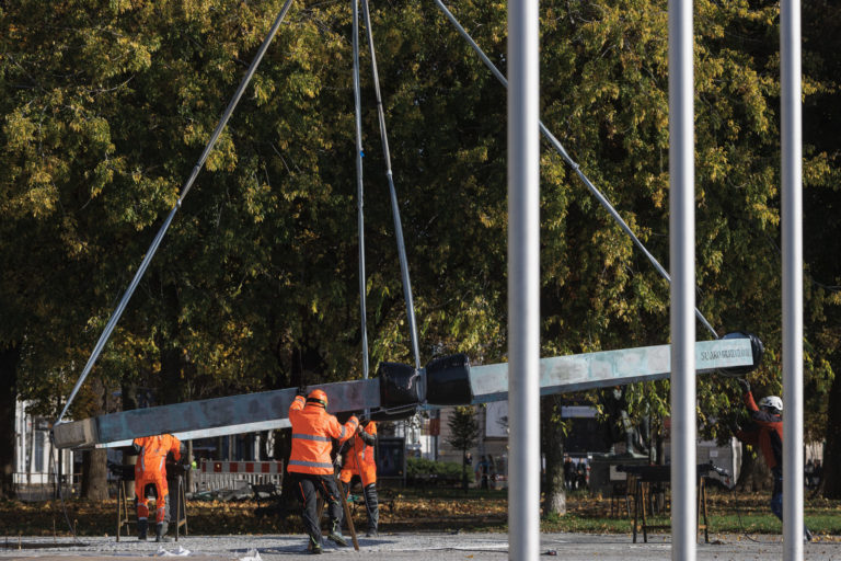 Inštalácia nadrozmerného umeleckého diela k protokolárnemu miestu SR, Hrobu neznámeho vojaka na Rázusovom nábreží v Bratislave. Bratislava, 6. november 2022. Foto: SITA/Branislav Bibel