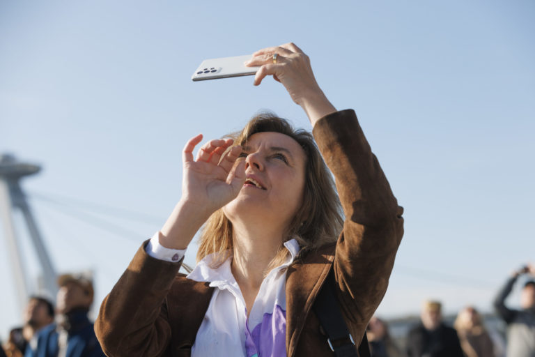 Starostka Starého Mesta Zuzana Aufrichtová počas leteckého transportu a inštalácie nadrozmerného umeleckého diela k protokolárnemu miestu SR, Hrobu neznámeho vojaka na Rázusovom nábreží v Bratislave. Bratislava, 6. november 2022. Foto: SITA/Branislav Bibel