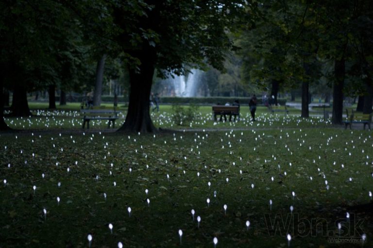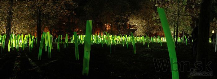 Ukážka inštalácie v Medickej záhrade počas pripravovaného podujatia Biela noc. Autorom inštalácie s názvom Mechanické pole je Vincent Leroy (FR). Festival súčasného umenia sa po prvý raz predstaví už túto sobotu, 10. októbra od 19:00 do 02:00 v Bratislave. Bratislava, 6. október 2015. Foto: SITA/www.bielanoc.sk