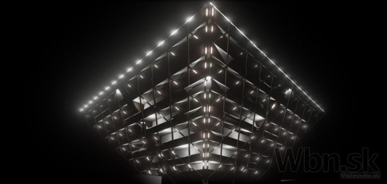 Ukážka inštalácie na budove tzv. obrátenej pyramídy Slovenského rozhlasu počas pripravovaného podujatia Biela noc. Autorom inštalácie s názvom ARC – Architektonické Centrum Rehabilitácie je ATK! (BE). Festival súčasného umenia sa po prvý raz predstaví už túto sobotu, 10. októbra od 19:00 do 02:00 v Bratislave. Bratislava, 6. október 2015. Foto: SITA/www.bielanoc.sk