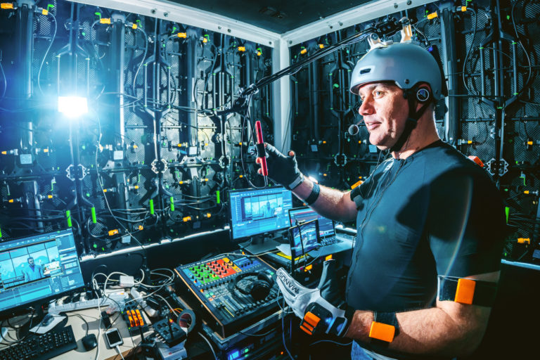 Hlas a pohyby prepožičal profesorovi Dohorelovi herec Peter Gecík prostredníctvom technológie Motion Capture, ktorá umožňuje živý rozhovor s virtuálnou postavou. Foto: Philip Morris