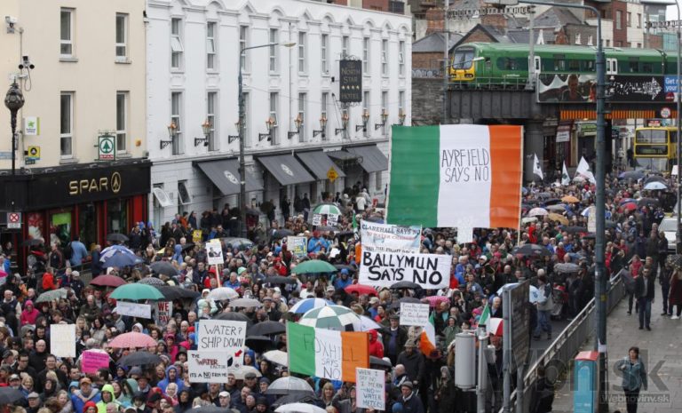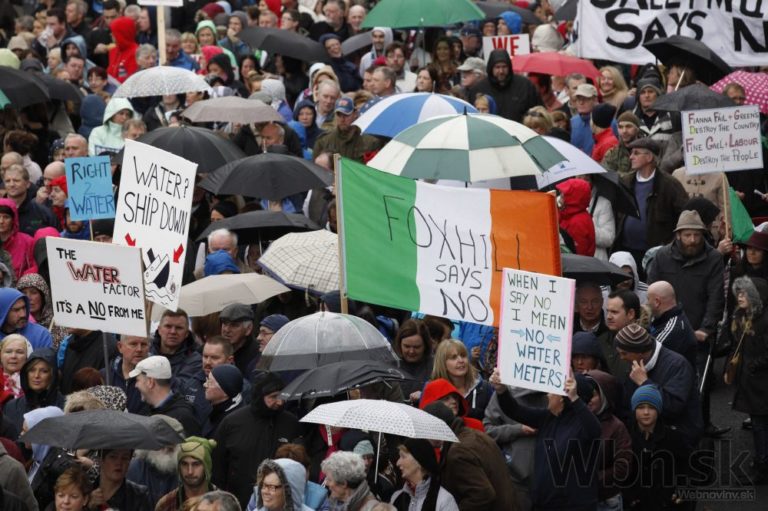 Ostrovná krajina je jednou z posledných západných krajín, kde sa vôbec nekontrolovala spotreba vody. V Dubline sa na demonštrácii zhromaždilo 20-tisíc ľudí, Írsko, 1. Nov., 2014.