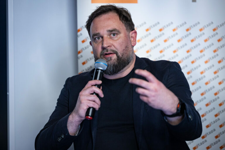 Generálny riaditeľ Ministerstva investícií, regionálneho rozvoja a informatizácie SR Michal Ilko počas technologickej konferencie ITAPA OPEN TALK: Ako zabrániť zneužitiu umelej inteligencie? v Sky Park Offices v Bratislave. Bratislava, 18. február 2025. Foto: SITA/Jana Birošová