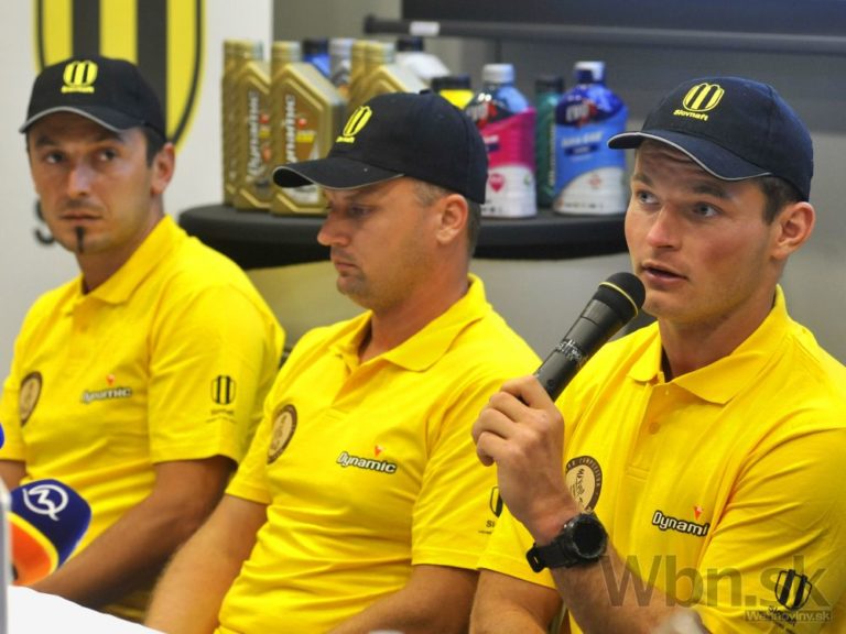 Sprava: Jazdec motocyklového Slovnaft Teamu Štefan Svitko, mechanik Zlatko Novosad a technický vedúci Martin Kubačka počas tlačovej besedy po návrate z Rely Dakar, kde obsadili vo svojej kategórii celkové piate miesto. Bratislava, 20. január 2015. Foto: SITA/Ján Slovák