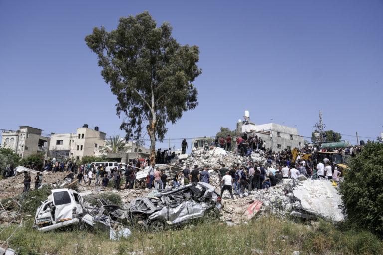 Palestínčania kontrolujú škody po vojenskej operácii v palestínskom meste Deir al-Ghusun. Foto: SITA/AP
