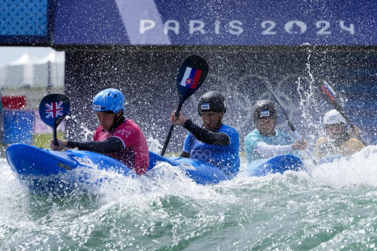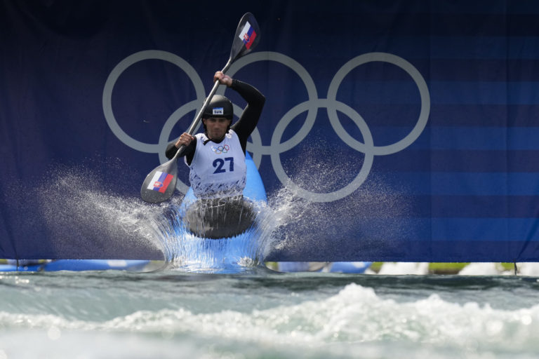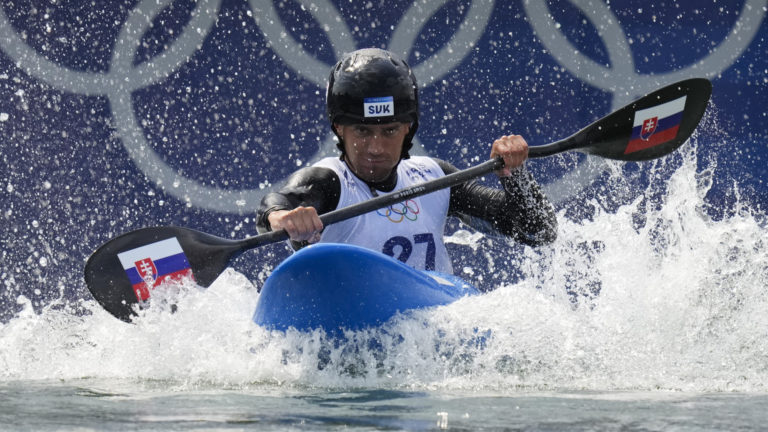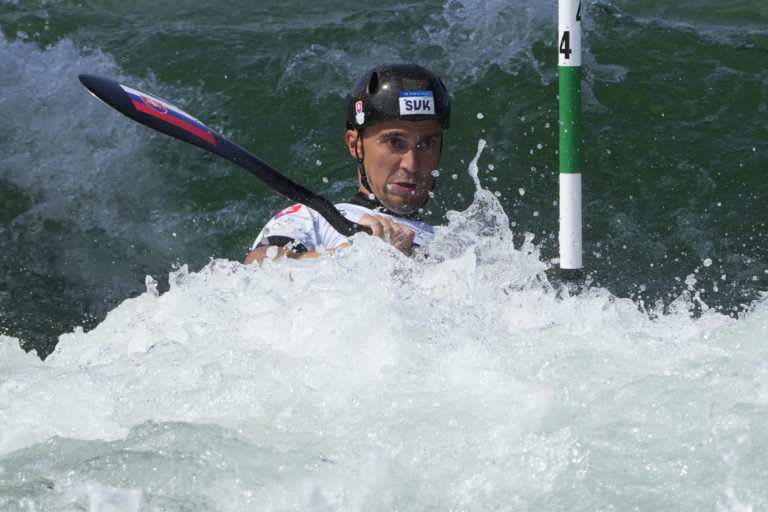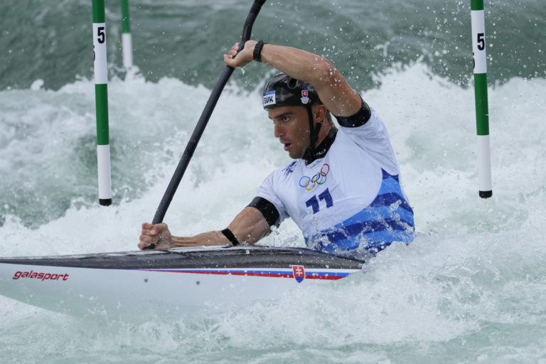 Slovenský kajakár Jakub Grigar sa zúčastnil závodov kajak krosu na letnej olympiáde v Paríži. Foto: SITA/AP