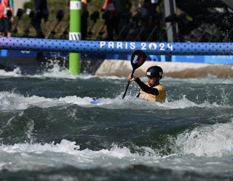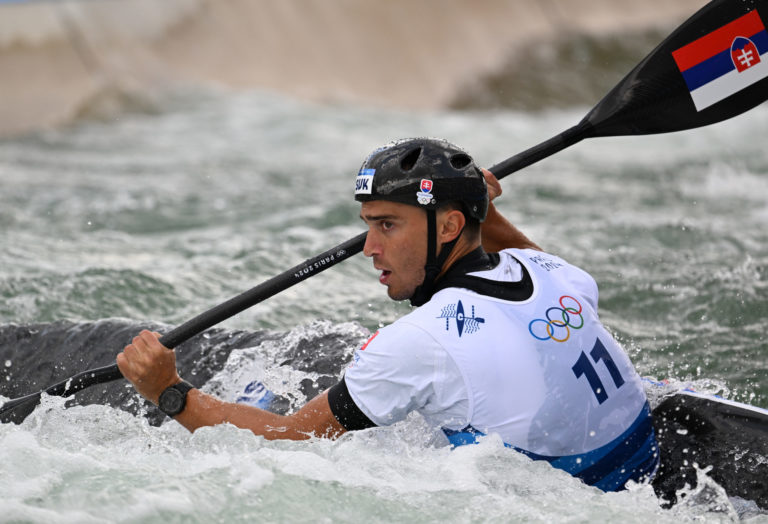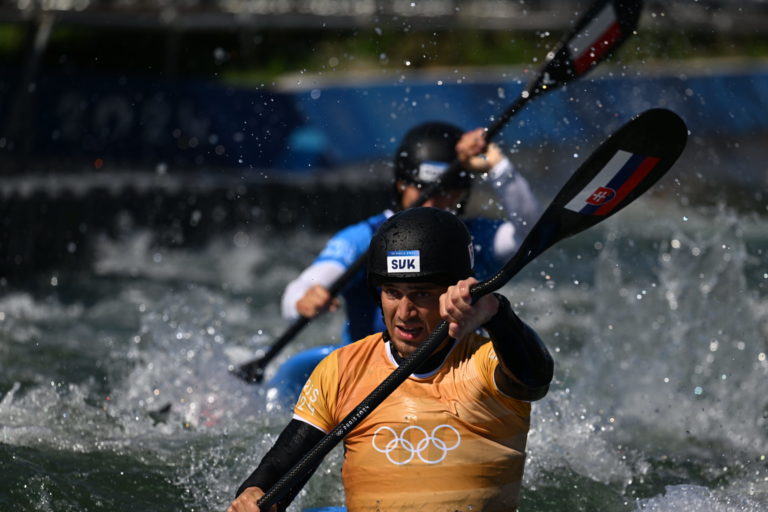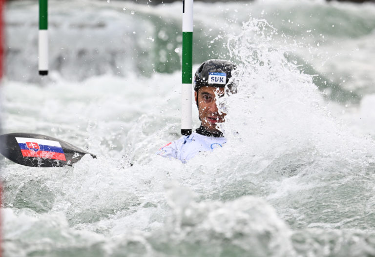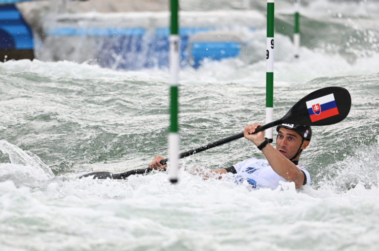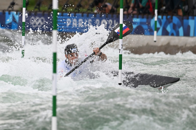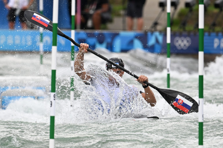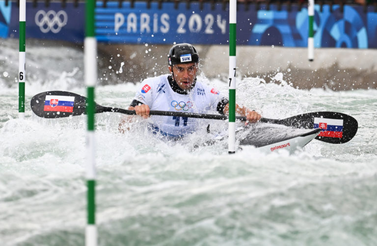 Slovenský reprezentant Jakub Grigar počas semifinálovej jazdy vo vodnom slalome v súťaži kajakárov K1 v rámci XXXIII. letných olympijských hier v Paríži. Paríž, 1. august 2024. Foto: SITA/Martin Medňanský