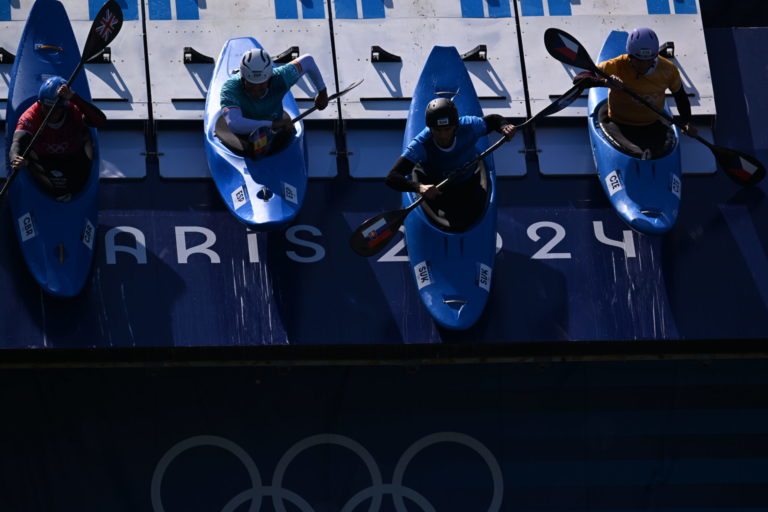 Slovenský reprezentant vo vodnom slalome Jakub Grigar počas kvalifikácie K1 na letnej olympiáde v Paríži. Vaires-sur-Marne, 30. júl 2024. Foto: SITA/AP.