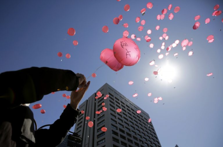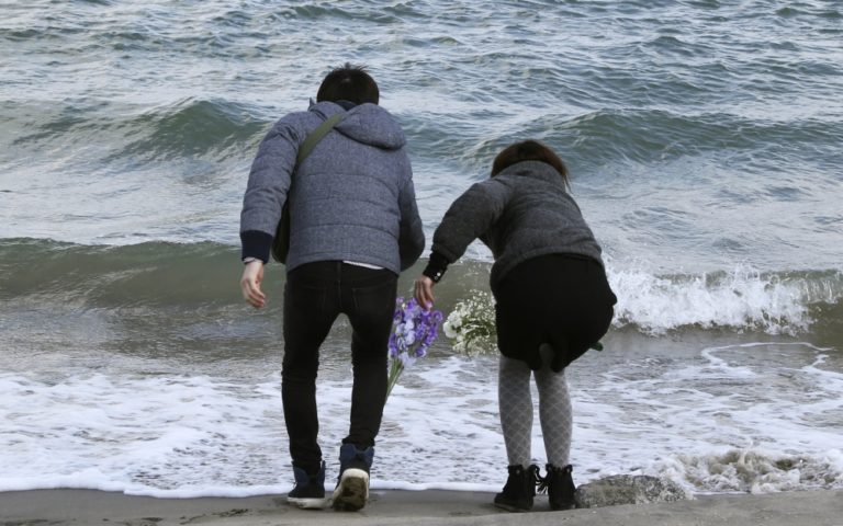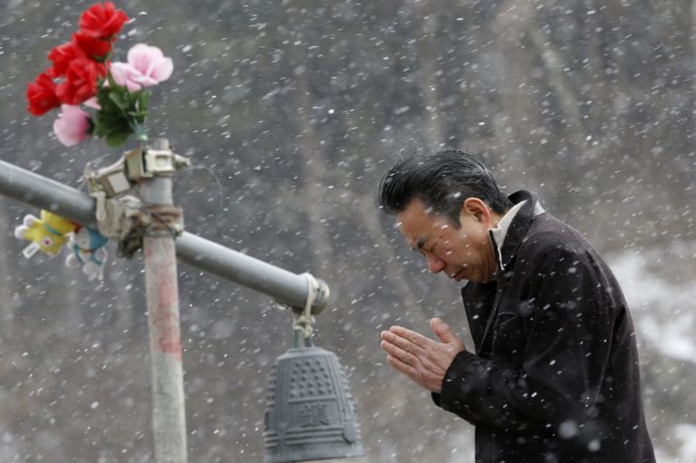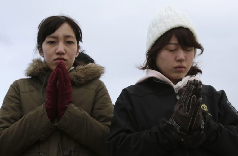 V roku 2011 spôsobilo zemetrasenie a následné vlny tsunami obrovské škody a vo Fukušime zapríčinili najhoršiu jadrovú katastrofu od výbuchu v ukrajinskej atómovej elektrárni v Černobyle. Do prostredia unikla radiácia, ktorá prinútila desaťtisíce ľudí opustiť svoje domovy. V utorok 11. marca 2014 si Japonci pripomínajú tretie výročie od katastrofy. Japonsko, 11. marca 2014. Foto: SITA/AP