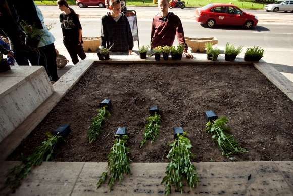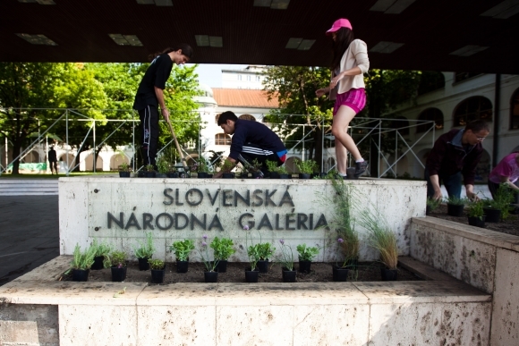 Akcia s názvom Revitalizácia zelene v rámci 3. ročníka Jarné okrášľovanie v centre Bratislavy. Akciu zorganizoval Bratislavský okrášľovací spolok v spolupráci so študentmi zo Strednej odbornej školy záhradníckej v Malinove na Rázusovom nábreží pred budovou SNG. Bratislava, 16. máj 2013. Foto: SITA/Diana Černáková