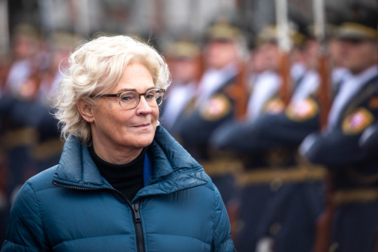Nemecká ministerka obrany Christine Lambrechtová počas prehliadky vojenskej techniky a odovzdania symbolického klúča od tanku Leopard 2A4 za účasti ministra obrany SR na Ministerstve obrany SR. Bratislava, 19. december 2022. Foto: SITA/Diana Černáková.