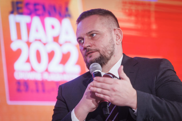 Štátny tajomník Ministerstva práce, sociálnych vecí a rodiny SR Juraj Káčer počas Medzinárodnej konferencie Jesenná ITAPA 2022. Bratislava, 30. november 2022. Foto: SITA/Branislav Bibel