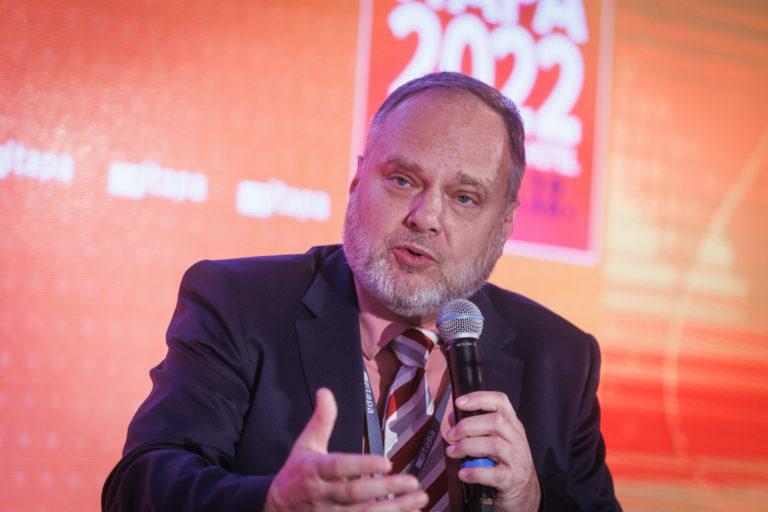 Riaditeľ sekcie predaja - hormadný trh spoločnosti Slovenský plynárenský priemysel (SPP) Peter Kučera počas Medzinárodnej konferencie Jesenná ITAPA 2022. Bratislava, 29. november 2022. Foto: SITA/Branislav Bibel