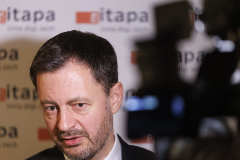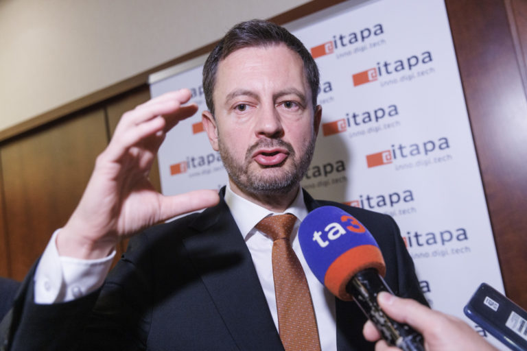 Premiér SR Eduard Heger počas Medzinárodnej konferencie Jesenná ITAPA 2022. Bratislava, 29. november 2022. Foto: SITA/Branislav Bibel