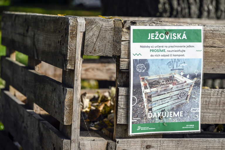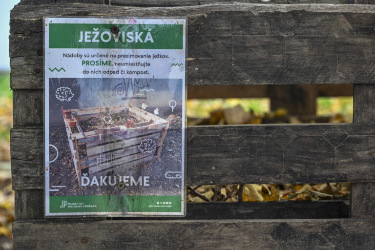 Ježovisko na Pankúchovej ulici v rámci 20 osadených ježovísk v bratislavskej Petržalke určených na prezimovanie ježkov. Bratislava, 30. október 2024. Foto: SITA/Milan Illík