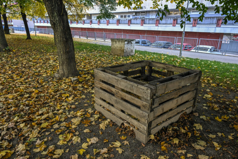 Ježovisko na Hrobákovej ulici v rámci 20 osadených ježovísk v bratislavskej Petržalke určených na prezimovanie ježkov. Bratislava, 30. október 2024. Foto: SITA/Milan Illík