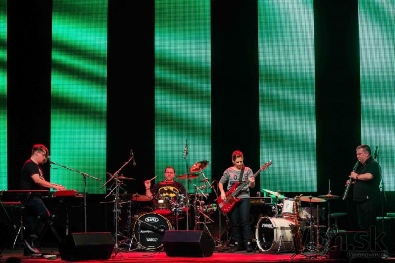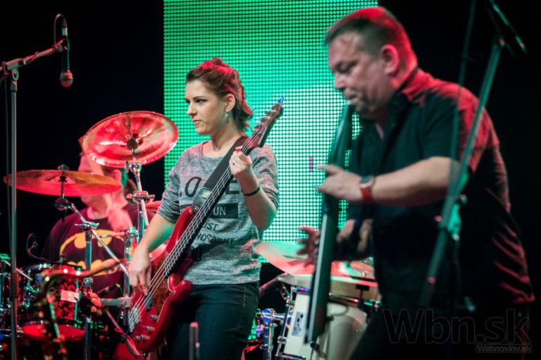 Sprava: Flautista a saxafonista Marián Jaslovský, basgitaristka Radka Miklošova, bubeník Milan Hlinka a klávesák Maťo Mikloš zo skupiny Cieľová skupina počas prvého dňa 40. ročníka festivalu Bratislavské jazzové dni (BJD). Bratislava, 24. október 2014. Foto: SITA/Jozef Jakubčo