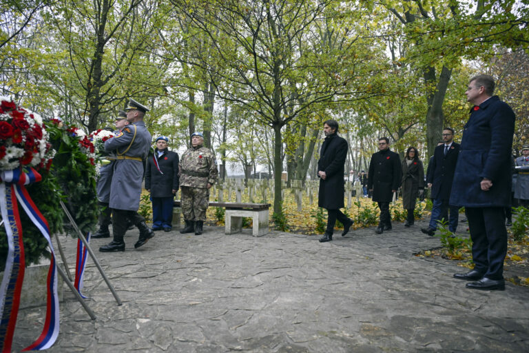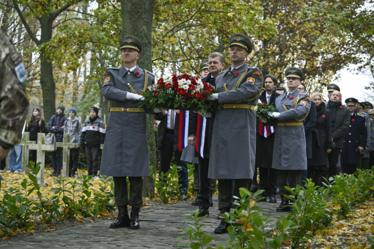Atmosféra počas pietneho aktu kladenia vencov pri príležitosti Medzinárodného dňa vojnových veteránov na Cintoríne prvej svetovej vojny v Petržalke. Bratislava, 11. november 2024. Foto: SITA/Milan Illík