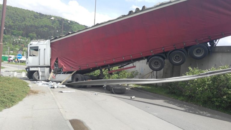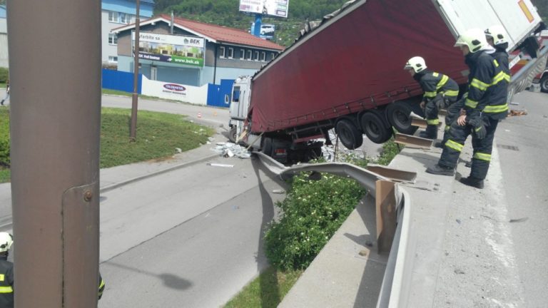 Dopravná nehoda kamióna v Žiline. ktorý spadol z mosta. Žilina, 12. máj 2016.