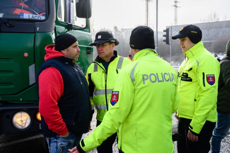 Polícia počas štrajku autodopravcov. 10. január 2020 Foto: www.facebook.com