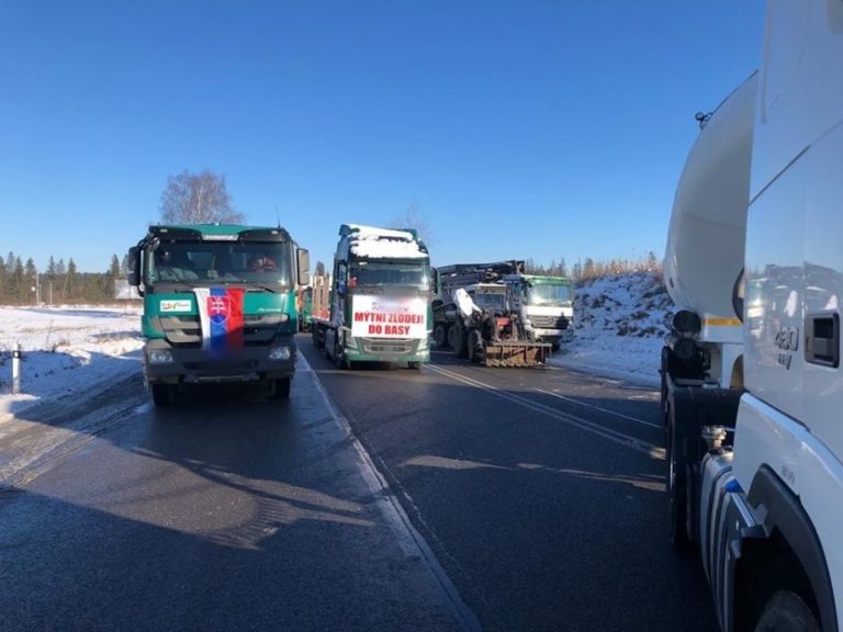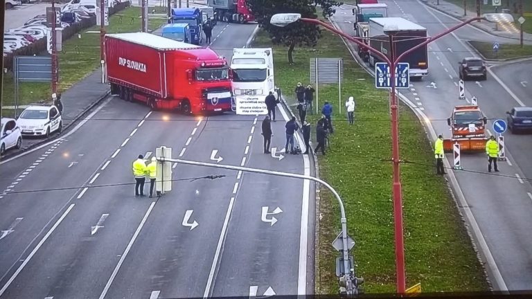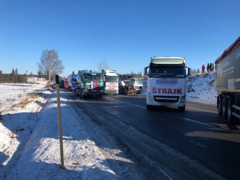 Štrajk autodopravcov na Slovensku pokračuje už tretí deň. 10. január 2020 Foto: www.facebook.com