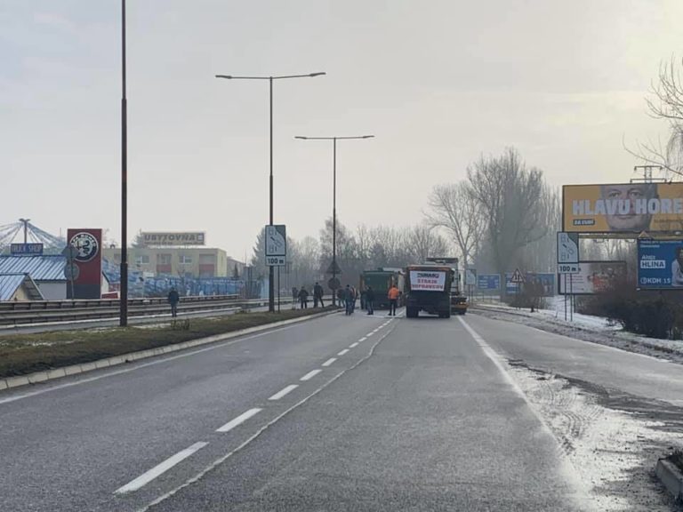 Doprava na Rožňavskej ulici v Bratislave počas štrajku autodopravcov. 10. január 2020 Foto: www.facebook.com