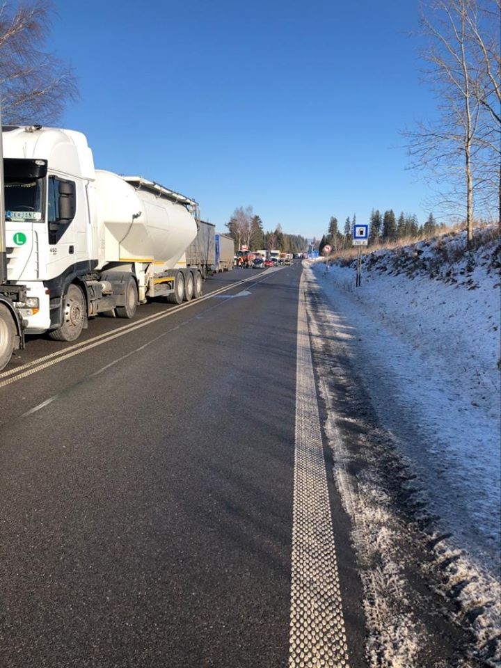 Kamióny zablokovali hraničný priechod Trstená - Chyžné. Foto: www.facebook.com.